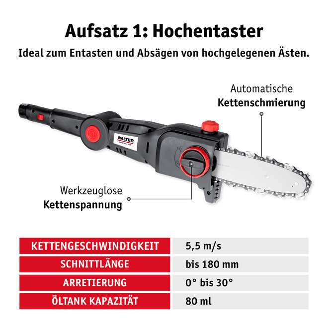 Für welche Arbeiten eignet sich der Akku-Hochentaster/Heckenschere von WALTER?