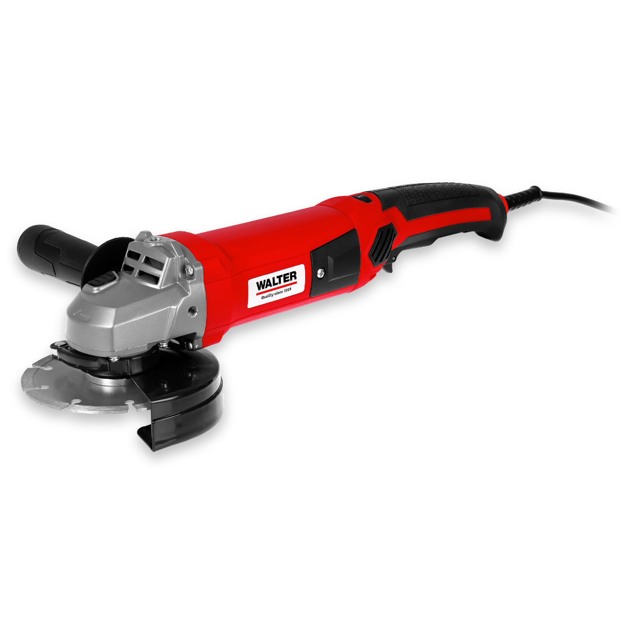 The WALTER 1200 W angle grinder with 125 mm disc is ideal for precise grinding and cutting – compact, versatile and with a low-vibration soft handle for a secure hold.