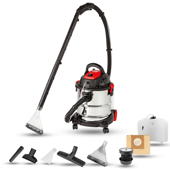 Alle Reinigungsschritte erledigst du mit einem einzigen Gerät – eine enorme Zeitersparnis. Der Polster- und Teppichreiniger ist dank seiner vier Rollen mobil und verfügt über praktische Halter für Netzkabel und Schlauch sowie einen Tragegriff. So reinigst du mühelos Polstermöbel, Textilien, Autositze oder andere Oberflächen. Und das mit leistungsstarken 1.600 Watt.