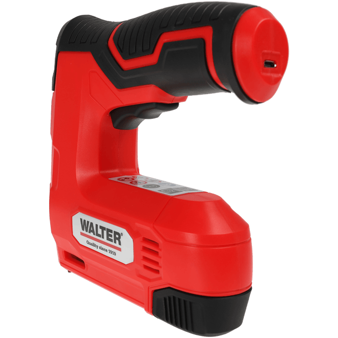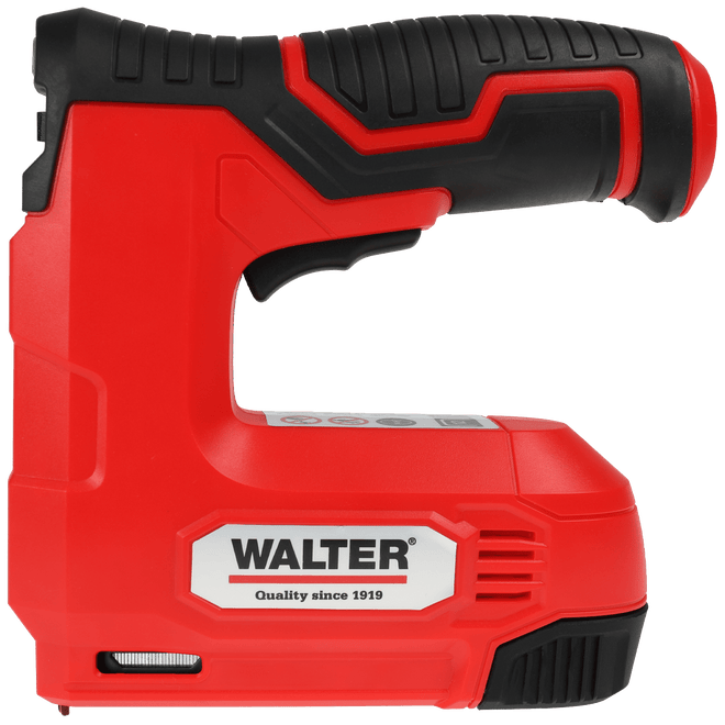 Der WALTER Akku Tacker 4 V mit 50 W Leistung und 30 Schlägen/Min ist ideal für kleine Befestigungsarbeiten – mit Auslösesicherung, Füllstandsanzeige, ergonomischem Griff und Zubehör für sofortigen Einsatz.