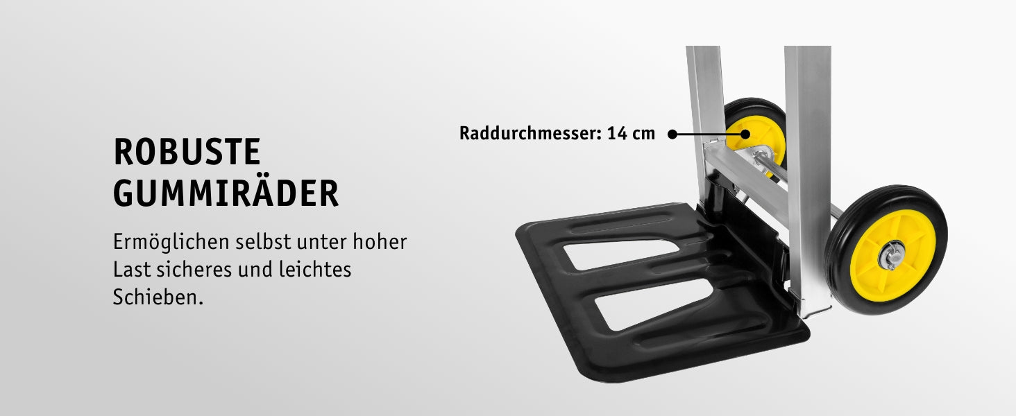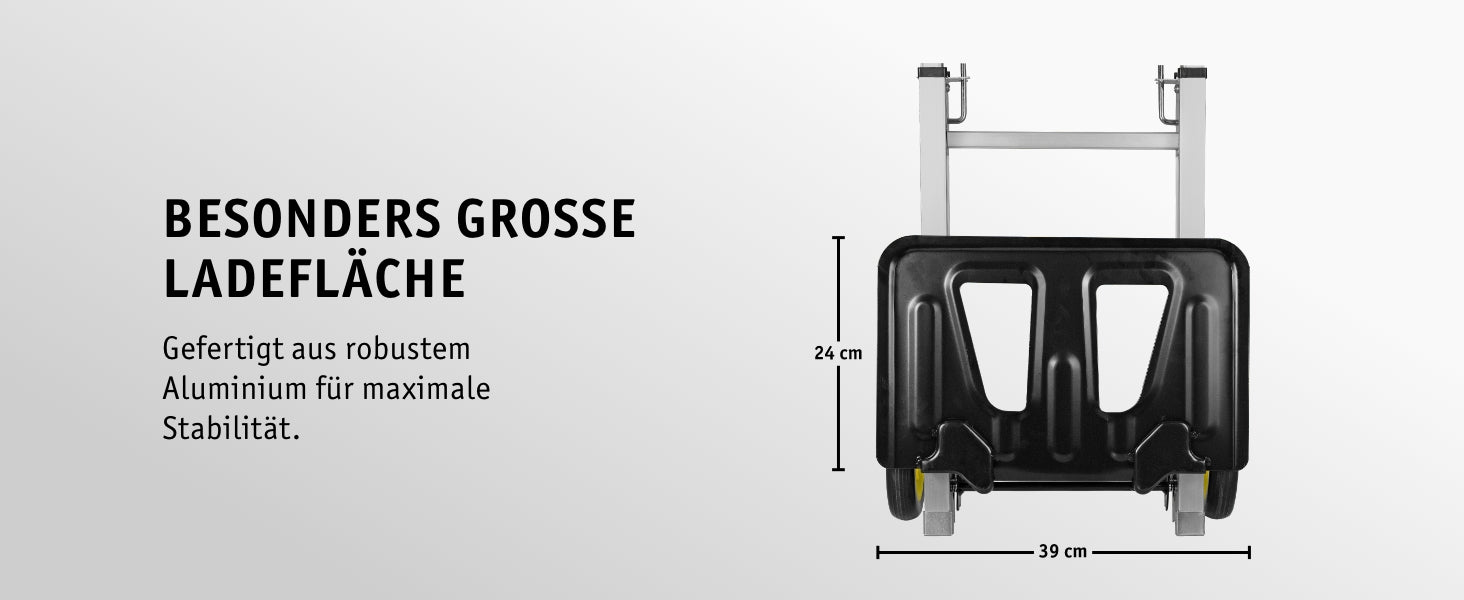 Die WALTER Alu-Sackkarre mit 90 kg Tragkraft, verstellbarem Griff (71–108 cm) und klappbarer Ladefläche ist leicht (4,6 kg), mobil und kompakt – ideal für Transportaufgaben im Alltag und unterwegs.