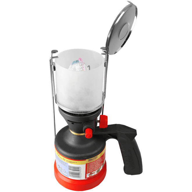 Die WALTER Campinglampe mit Piezo-Zündung bietet stufenlos einstellbare Helligkeit und einfachen Start – mit breitem Tragegriff ideal für Camping, Outdoor-Abenteuer und flexible Lichtversorgung unterwegs.