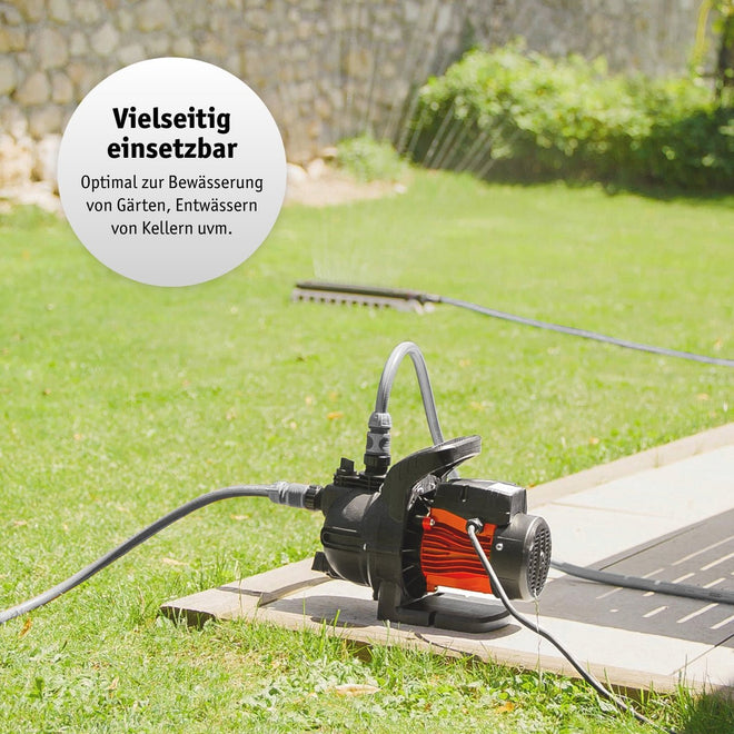 Die WALTER Gartenpumpe 600 W fördert bis zu 3000 l/h bei 35 m Höhe – leise, kraftvoll und sicher. Ideal für Gartenbewässerung, Poolpflege oder bei Hochwasser – vielseitig einsetzbar.