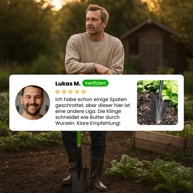 Mach kurzen Prozess mit Wurzeln, Steinen und hartem Boden! Der Wurzelspaten aus gehärtetem Carbonstahl kombiniert Kraft, Präzision und Komfort – ideal für Gärtner:innen, die effizient arbeiten wollen.