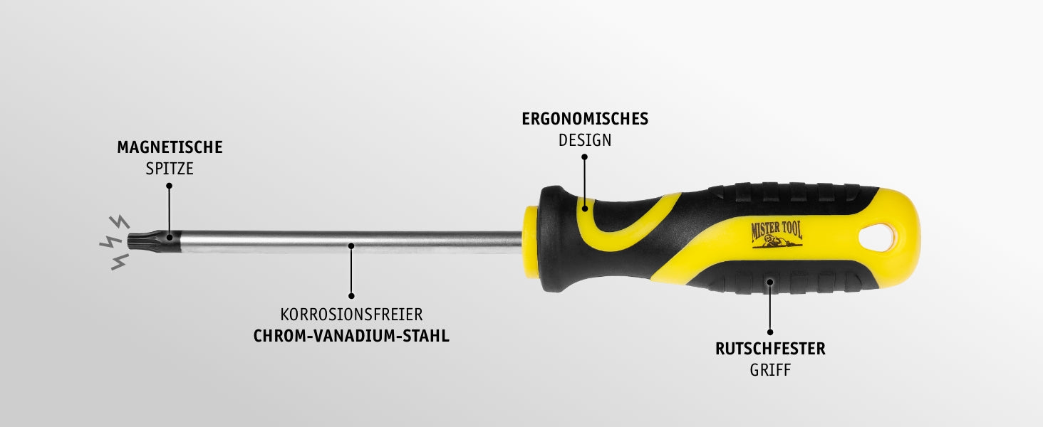 Das MISTER TOOL XXL Schraubendreher- und Bitset 100-tlg. bietet maximale Vielseitigkeit – mit magnetischen Spitzen, ergonomischen Griffen und Ratsche, ideal für alle Schraubarbeiten im Haus und in der Werkstatt.